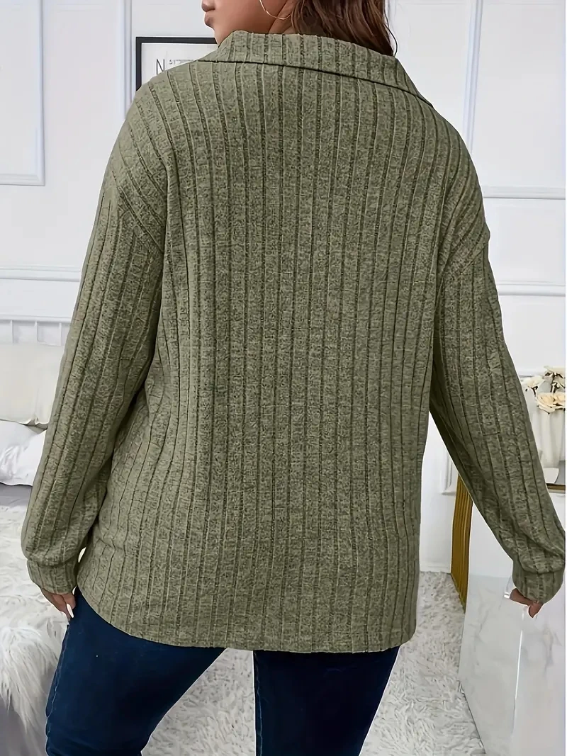 Découvrez notre T-shirt Casual Grande Taille, conçu spécialement pour les femmes qui recherchent confort et style. Ce t-shirt est fabriqué en tissu côtelé de haute qualité, offrant une sensation douce sur la peau tout en permettant une légère élasticité pour un ajustement parfait. Avec ses manches longues, il est idéal pour les journées fraîches tout en restant décontracté et tendance.Le col à revers ajoute une touche d'élégance à ce t-shirt basique, le rendant parfait pour une variété d'occasions. Que vous souhaitiez le porter pour une sortie décontractée, une journée au bureau ou même une soirée entre amis, ce t-shirt s'adapte à toutes les situations. Il peut être facilement associé à un jean, une jupe ou même un pantalon habillé, vous permettant de créer des looks variés.