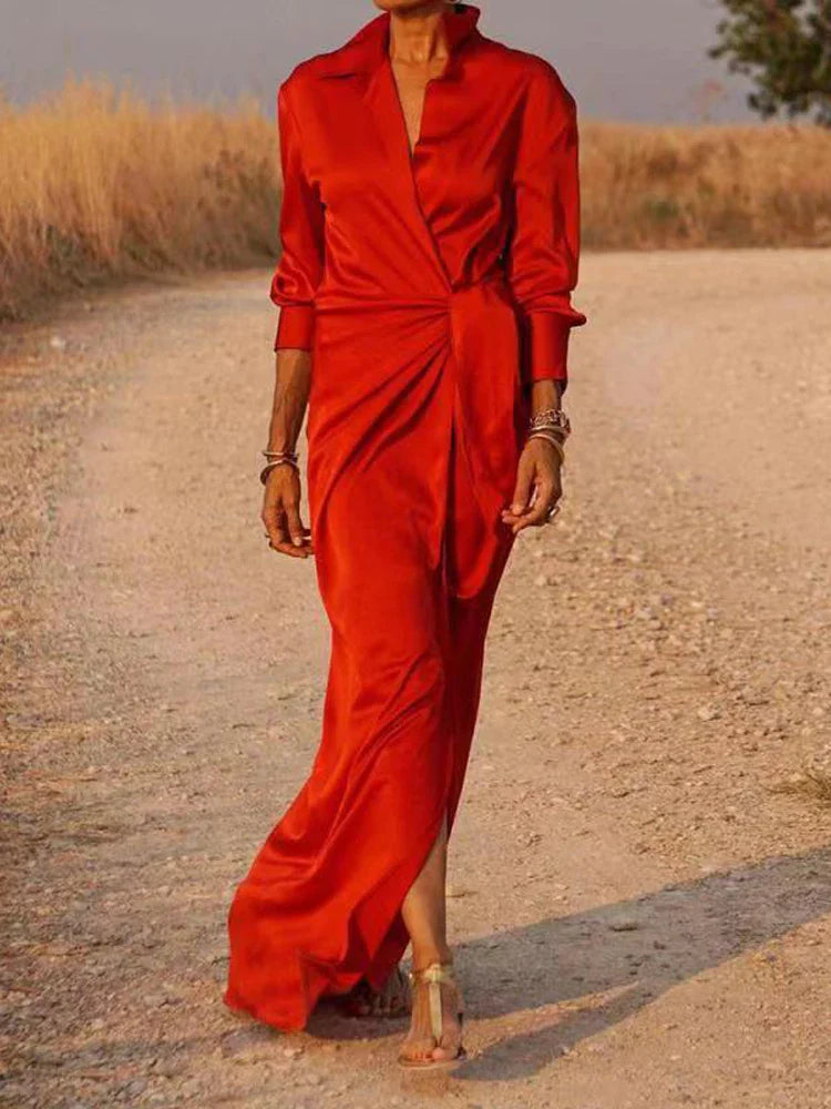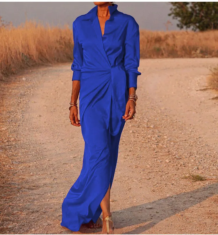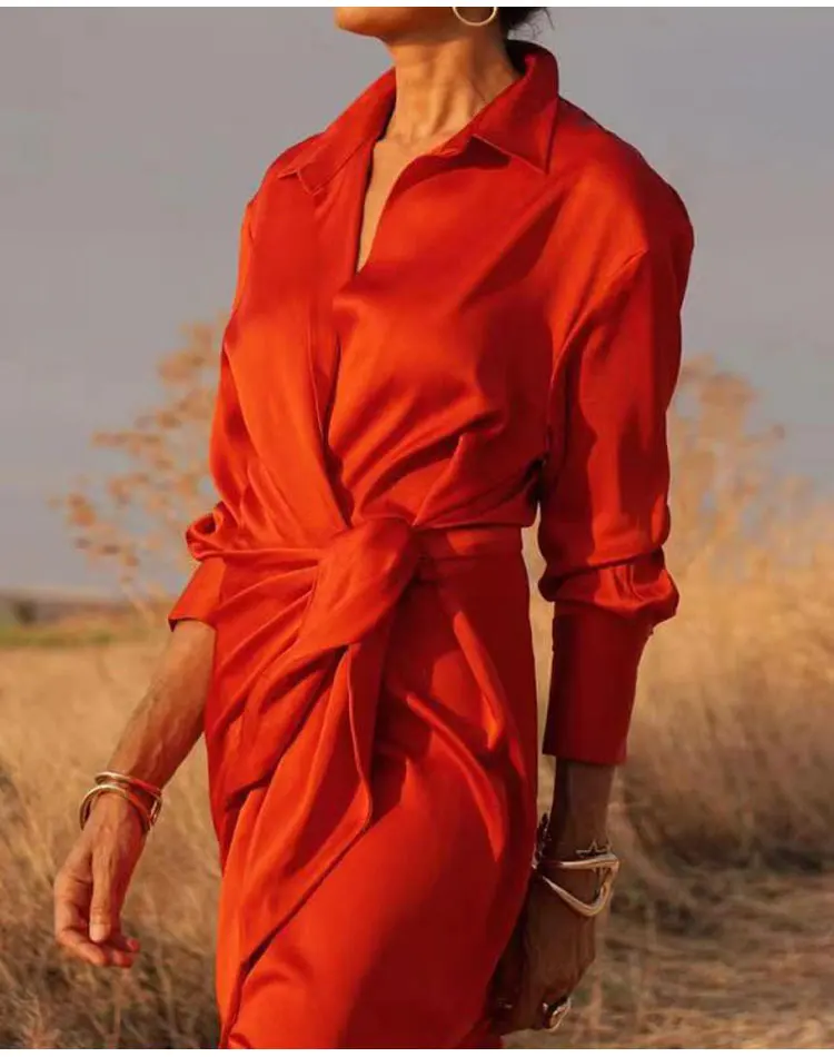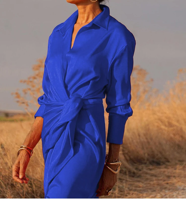 Découvrez la mode tendance avec notre robe élégante et décontractée, parfaite pour le printemps et l'automne. Cette robe à manches longues et col rabattu combine le style d'une chemise avec la féminité d'une jupe. Sa coupe ample et sa taille haute nouée assurent un ajustement confortable tout en mettant en valeur la silhouette.Disponible en couleurs unies, cette robe polyvalente est idéale pour les journées au bureau, les sorties en ville ou les soirées entre amis. Fabriquée à partir de matériaux de haute qualité, elle offre un confort exceptionnel et une grande durabilité. Le design épuré et élégant de cette robe en fait une pièce incontournable de votre garde-robe, alliant style et praticité.